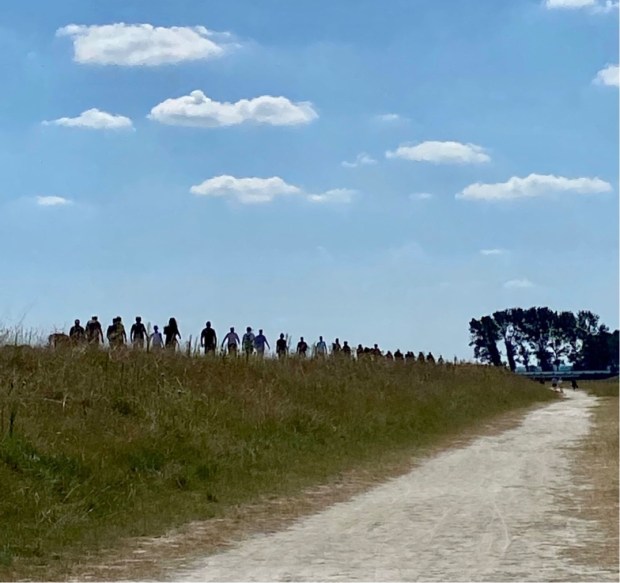 Durch meinen Beruf habe ich ein zwiespältiges Verhältnis zur Sonne entwickelt. Zu oft wurden mir in der Apotheke ihre Schattenseiten gezeigt. Ein Regenschirm war daher ein hilfreicher Begleiter. Vom Infocenter aus fährt in regelmäßigen Abständen ein Shuttlebus. Da heißt es dann, sich in einer lange Reihe hinten anzustellen. Da das Warten auf den Bus fast genauso lange dauert wie der Anmarsch, gehen die Meisten zu Fuß. Die Ameisenstraße der vielen Besucher erinnerte mich an einen Pilgerzug. Trotz des anstrengenden Weges unter gleißender Sonne würde ich es immer wieder so machen, weil man die Aussicht auf den Klosterberg ausgiebig genießen kann.