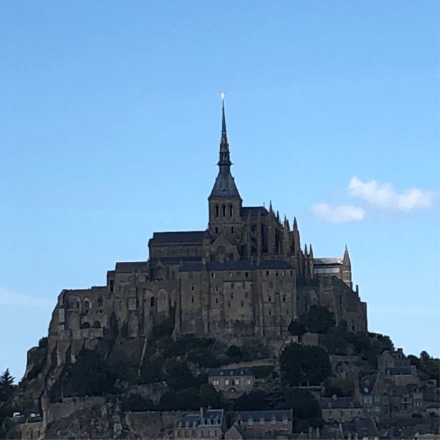 Wegen des Fernblicks lohnt es sich, kurz vor dem Ziel, am Straßenrand einen Stopp einzulegen. Dieser erste Blick auf den Berg hat mich für einen Moment verstummen lassen (passiert bei mir nicht allzu oft). Der Anblick ist überwältigend. Zum Mont St-Michel ist schon alles gesagt und beschrieben worden, daher erspare ich mir die Attribute.