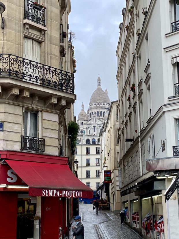 Es war naheliegend, dass ich in Paris nach Stoffen schauen würde. Vorab hatte ich einiges an Nähblogs gelesen und mich kundig gemacht, wo man die besten Stoffe finden kann. Mental so ausgestattet, sind wir zum Montmartre gefahren. Am östlichen, unteren Teil von Sacré-Coeur liegt es, das Stoffparadies, oder der Nähhimmel auf Erden. Hier reiht sich Stoffgeschäft an Stoffgeschäft. Am Anfang dachte ich, mir erst einen Überblick verschaffen zu wollen. Diesen habe ich allerdings schnell verloren und musste aufpassen, selbst nicht unter Stroffballen verloren zu gehen. Es ist schier unglaublich, wie viele Stoffe hier angeboten werden. Das Angebot reicht von einfach bis sehr exklusiv und es gibt gar nichts, was es nicht gibt. Von kleinen Läden bis zu 5-etagigen Kaufhäusern kann man sich durch die Ballen wühlen, anfassen, vorhalten und schwelgen. Das habe ich auch getan, bis ich am Ende nicht mehr wusste, was ich eigentlich wollte. Mit Rücksicht auf meinen Rücken und auf den Mann, der geduldig mitgelaufen ist, haben wir dann erstmal eine Pause eingelegt und gegessen. Ihr wisst ja: 12 Uhr….