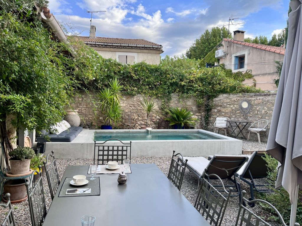 Für die Anfahrt haben wir uns diesmal einen Flug nach ‚Marseille‘ gebucht und sind von dort mit einem Leihwagen weiter gefahren. Das war völlig problemlos. Bei der von uns gewählte Unterkunft handelt es sich um ein Privathaus mit mehreren Gästezimmern. Das Haus und die Zimmer sind schick und modern eingerichtet. Gefrühstückt wurde zusammen mit den anderen Gästen im Garten. Leider steht das Haus an einer viel befahrenen Straße. Nachts war das kein Problem, weil kaum Verkehr war. Tagsüber war es lauter, aber der Garten liegt an der Hinterseite des Hauses und ist still und friedlich. Es ist ein durch und durch provenzalischer Garten mit Bäumen, Blumen, Kräutern und stilvoller Deko.
